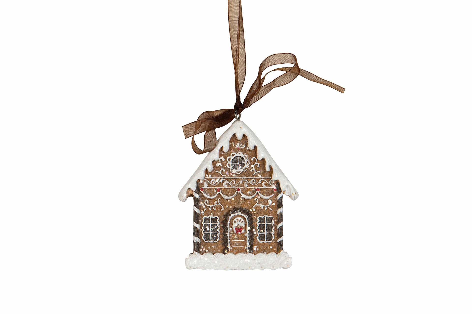 Klä julgranen på ett lekfullt sätt med ett pepparkakshus. Fina detaljer och ett satinsnöre att hänga med.