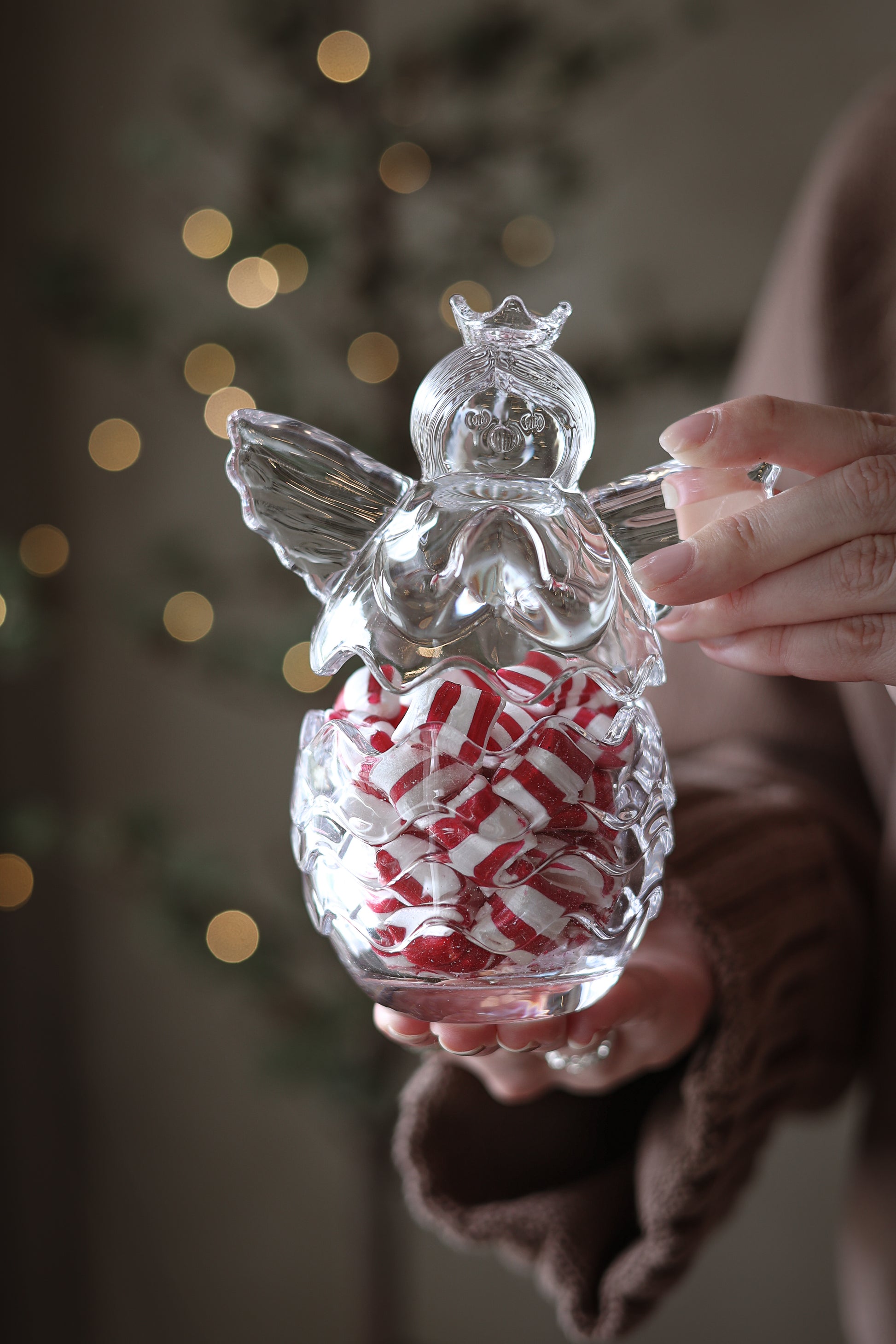 Söt glasburk i formation av en Ängel. Fyll med godsaker till jul eller tänd ett LED ljus inuti.